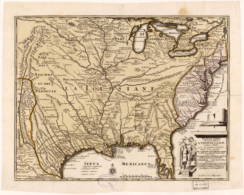 Map of Louisiana and the course of the Mississippi. William d’Isle. 1718.