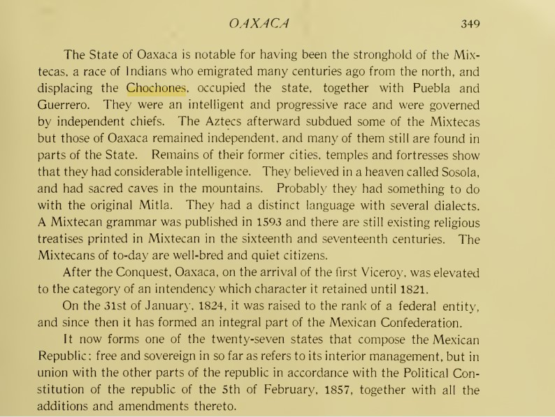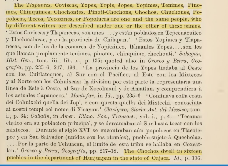 From Bancroft’s work, it is listed how the Shoshoni/Chuchone are one and the same people with the Hopi/Yope/Jope, Tenimes, Pinomes, Popolocas, Tecos, Tecoxines etc. According to Maria Robinson Wright in Mexico: A history in it’s progress and development in one hundred years, she says on pg. 349 that the Mexica came from the north and “displaced” the Chuchones. See below.