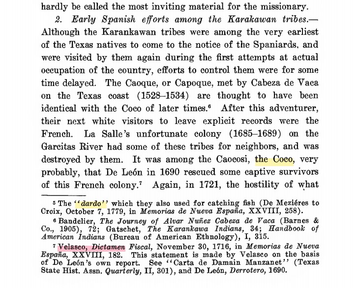 The Coco Indians were hounded by the “war dogs for Jesus” aka the Roman Catholic military orders of Fransciscans and Dominicans. The Coco are claimed as the Indians on the Gulf coast who interacted with Alvar Nunez Cabeza de Vaca, but as the Texas scholars aren’t certain, maybe Cabeza de Vaca doesn’t exist, and it’s all just a fantasy like the rest of Texas history. The Coco are associated with many Jesuit missions or military expeditions. See below.