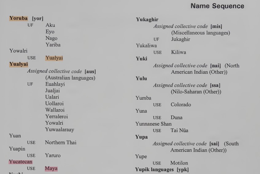 Source: MARC code list for languages. 2000 Edition. Library of Congress. pgs 34, 37, 71, and 123. Washington.